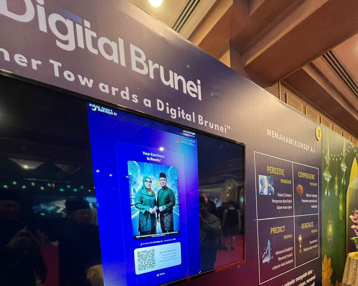 Pameran tersebut juga memperlihatkan demonstrasi interaktif yang membolehkan pengunjung untuk menghasilkan Kad Raya digital berasaskan Generative A.I di mana teknologi ini mengekalkan wajah pengguna sambil menjana imej baharu yang menampilkan pengguna dalam pakaian tradisional bercirikan futuristik dengan latar belakang gambaran Brunei pada masa hadapan. Selain itu, elemen interaktif ini bukan sahaja sebagai satu pengalaman pendidikan dan pembelajaran, tetapi juga memberi nilai tambah serta penekanan dari segi aspek kesedaran awam mengenai penggunaan A.I secara beretika, bertanggungjawab dan selamat. Antara aspek yang diketengahkan termasuk kepentingan Perlindungan Data Peribadi, memastikan keselamatan maklumat agar tidak disalahgunakan, serta Kesedaran Etika dalam penggunaan teknologi dengan penuh tanggungjawab, selaras dengan prinsip keselamatan siber dan kepercayaan masyarakat.